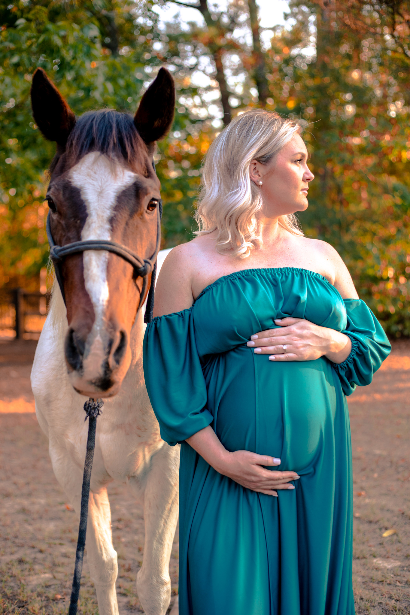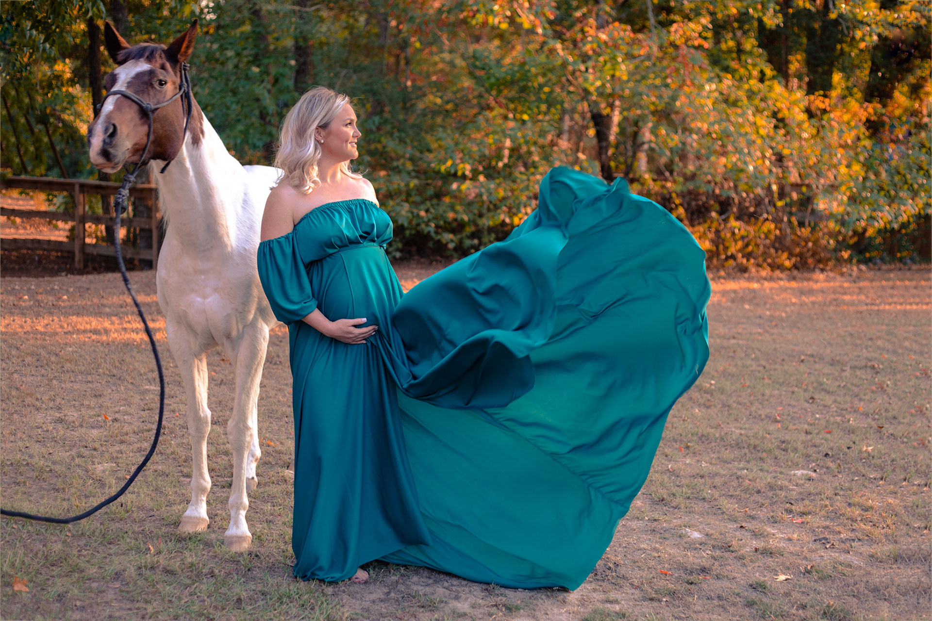 What a beautiful setting for this epic maternity session with two gorgeous mamas-to-be! These ladies were so fun and loved interacting with our two horse models.