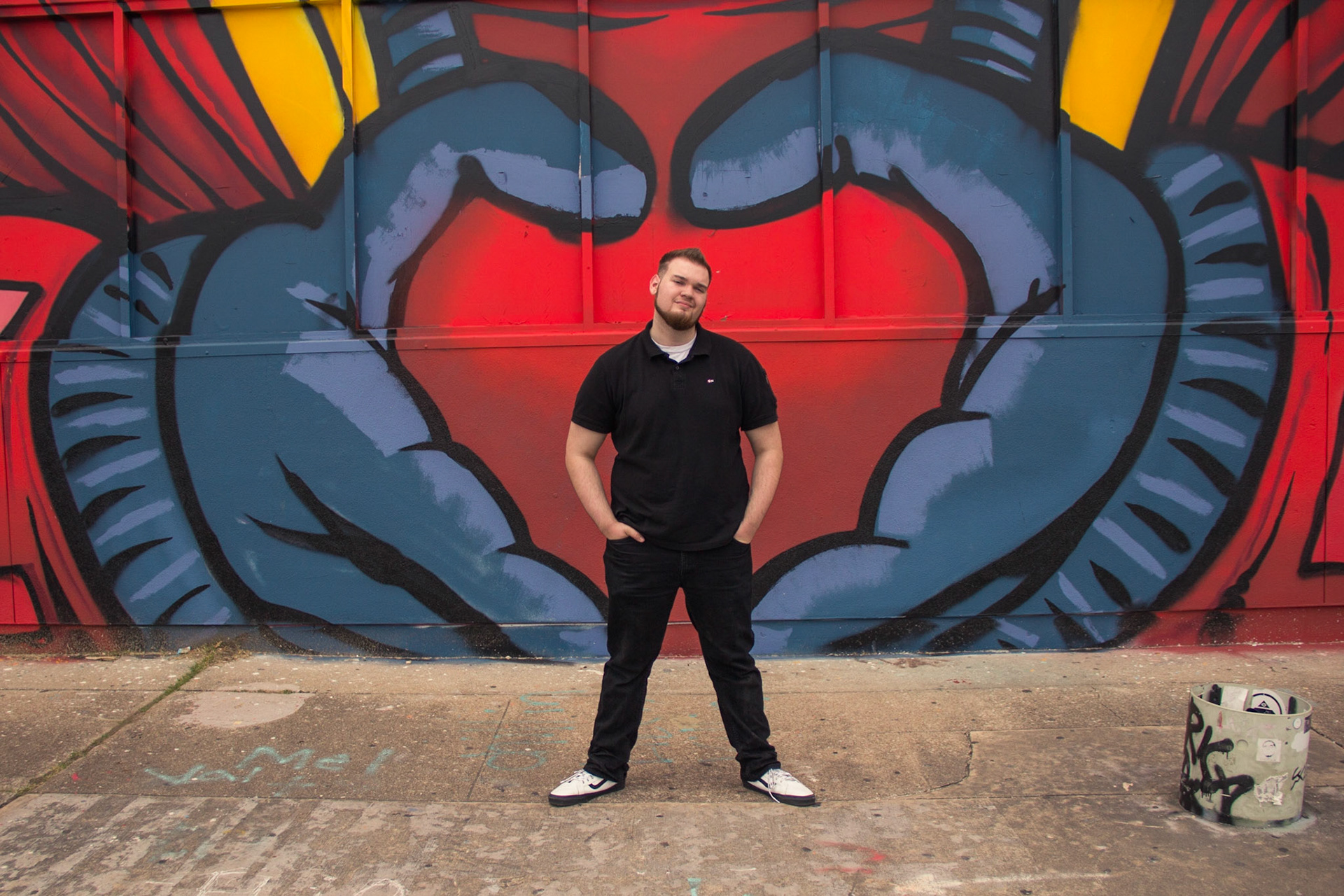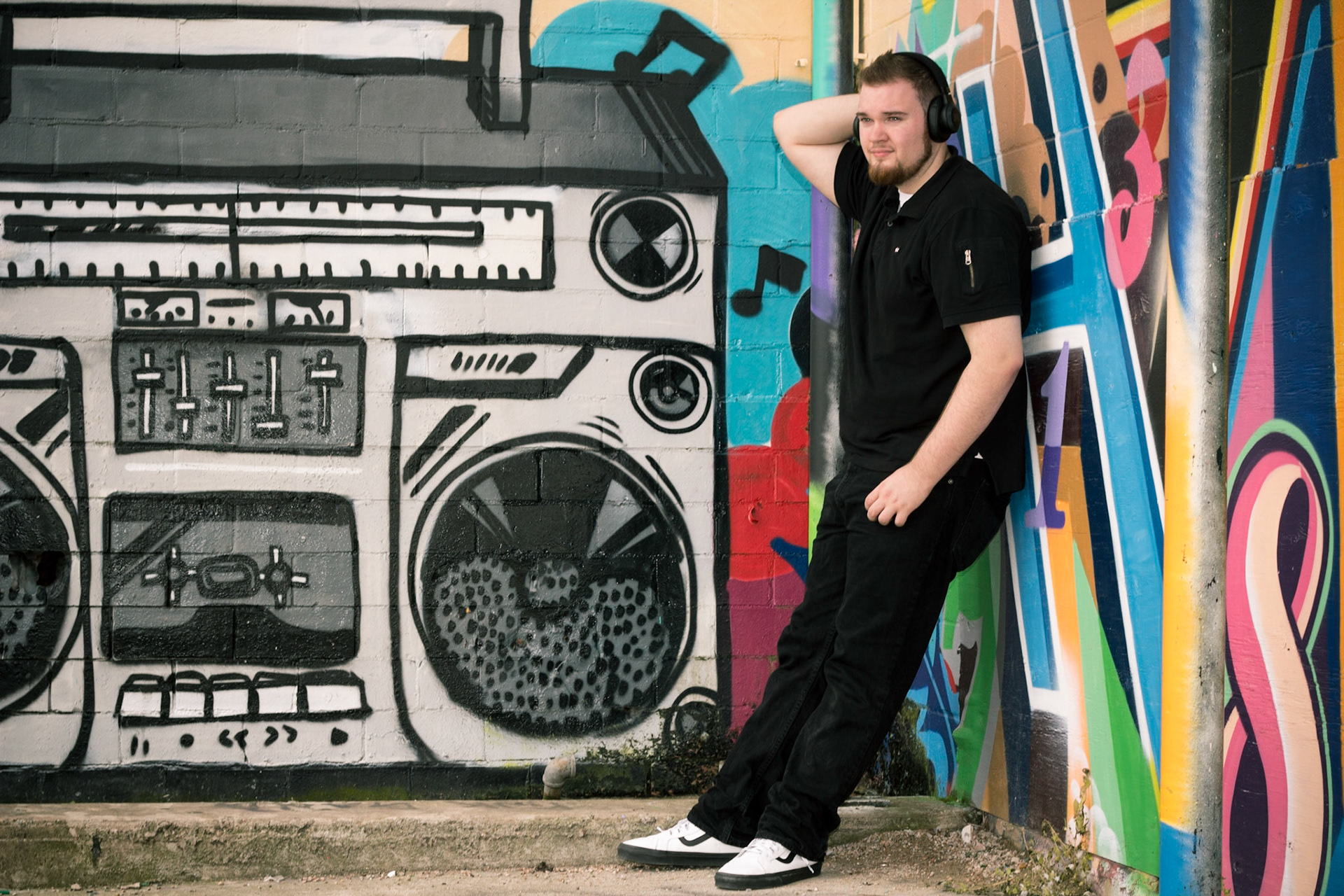 This high school senior was really into tattoo art and music, so we chose to do the session at Houston Graffiti Park for the colorful, gritty, urban setting.